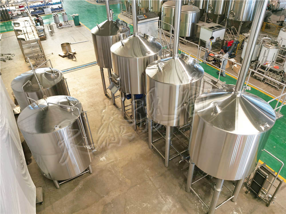 標準組成 2000L糖化罐+2000L過濾槽+2000L煮沸罐+2000L旋沉槽+4000L熱水罐+304不銹鋼輸送管道+全不銹鋼平臺+配套304不銹鋼氣動蝶閥和管件+酒花過濾器+20㎡板式換熱器+配套儀表儀器
